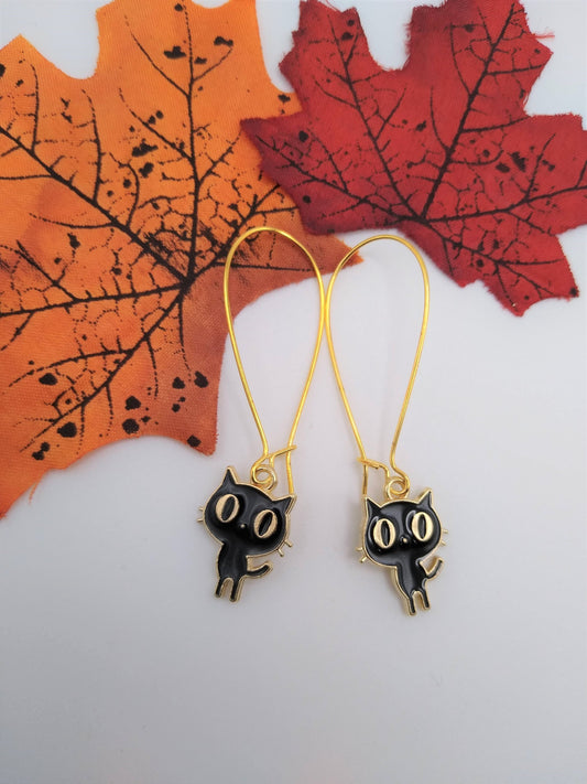 Sold outCute Gold & Black Cat Earrings