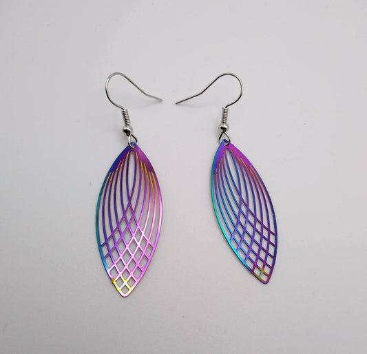 Sale! Oval Ellipse Earrings / Rainbow Filigree Dangle Earrings / Lightweight Earrings / Hypoallergenic Jewelry