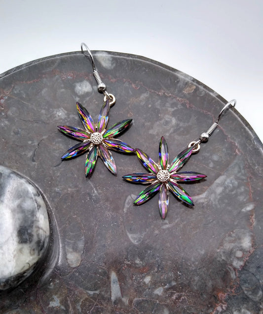 Crystal Flower Earrings / CZ Crystal Dangle Earrings / Rainbow Crystal Jewelry / Gifts for Here / Valentine's Day Gift